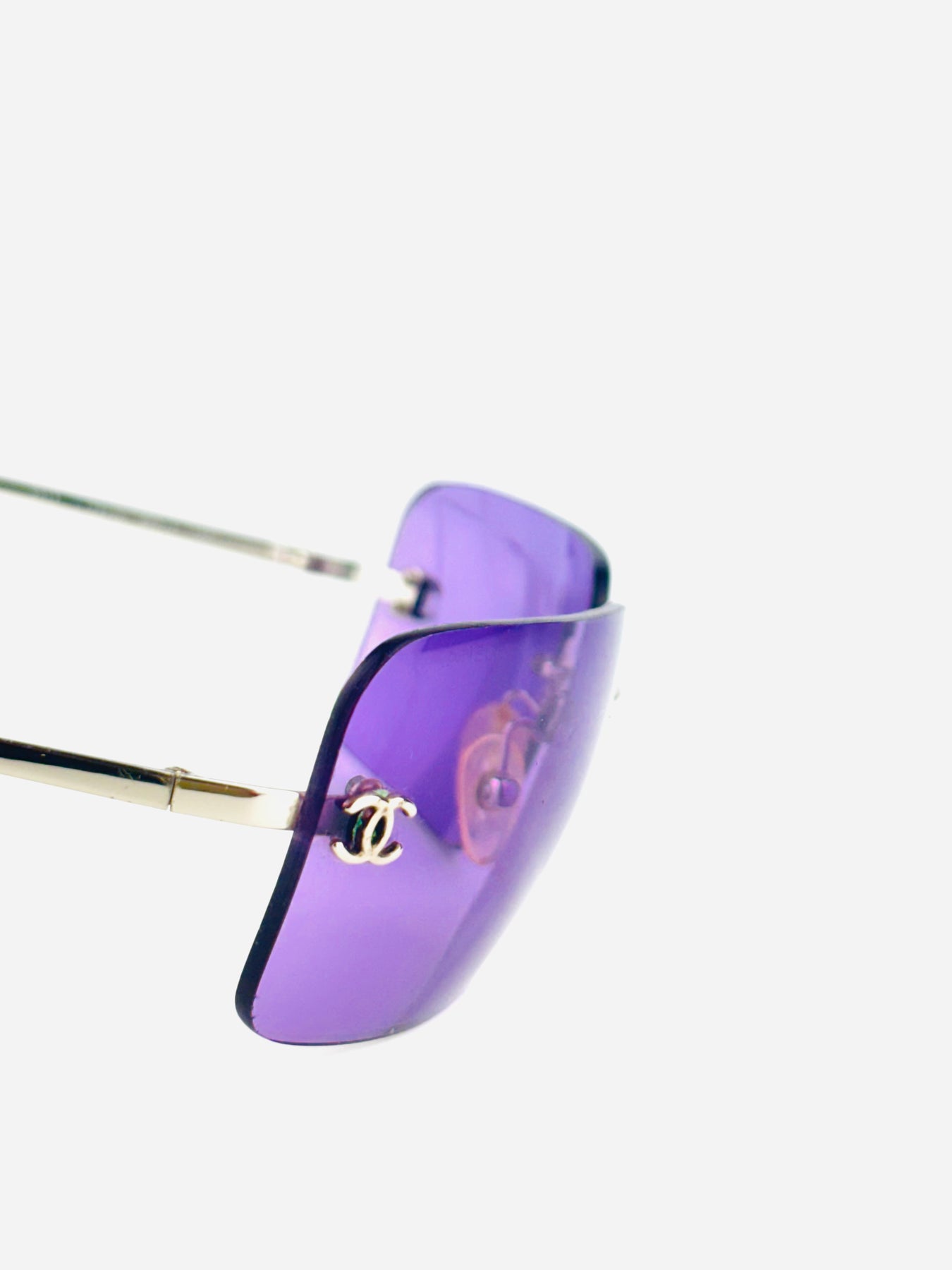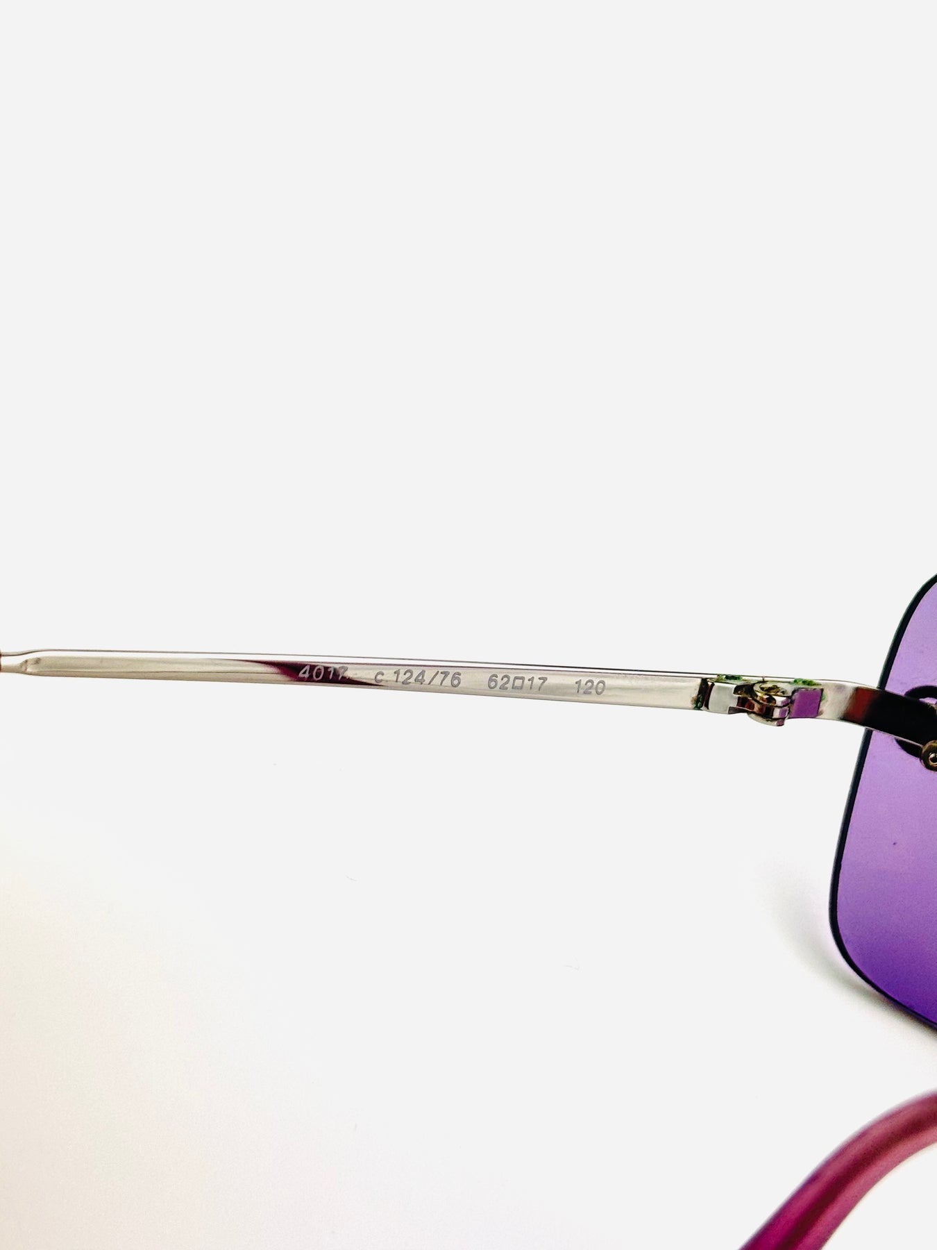 An iconic early-2000s Chanel creation, the 4017 features a fully rimless construction with delicate pink gradient lenses and minimalist silver details. Light, refined, and feminine, it embodies the futuristic elegance of Chanel’s Y2K era.