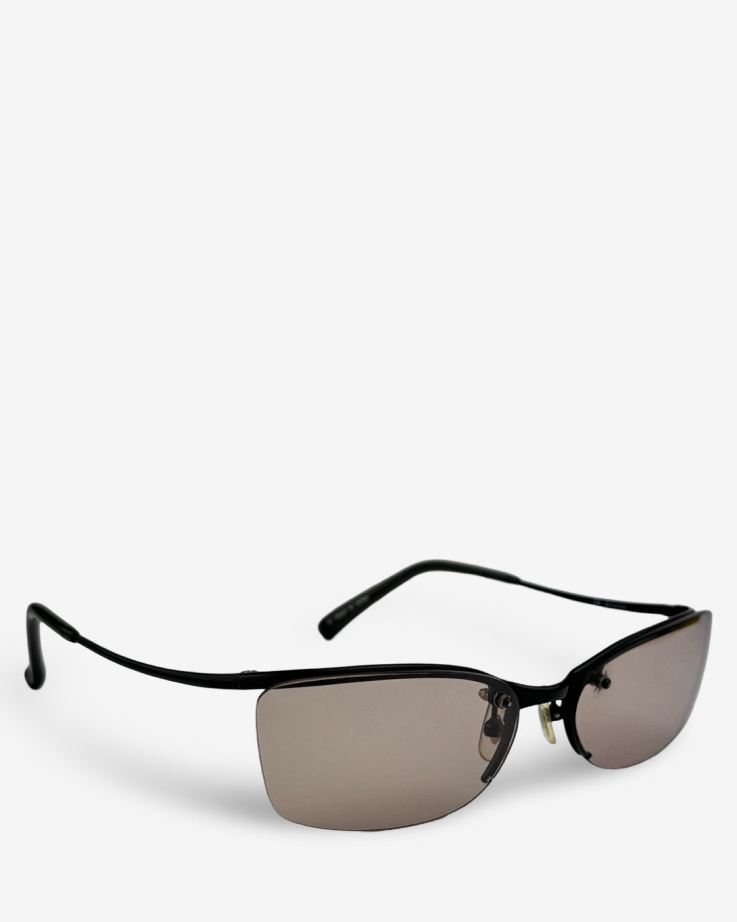 DESCRIPTION : Sleek and stylish sunglasses featuring a minimalistic black frame with brownish lenses. These sunglasses provide both a high-fashion look and effective protection against the sun. Made in Japan, showcasing precision and quality.