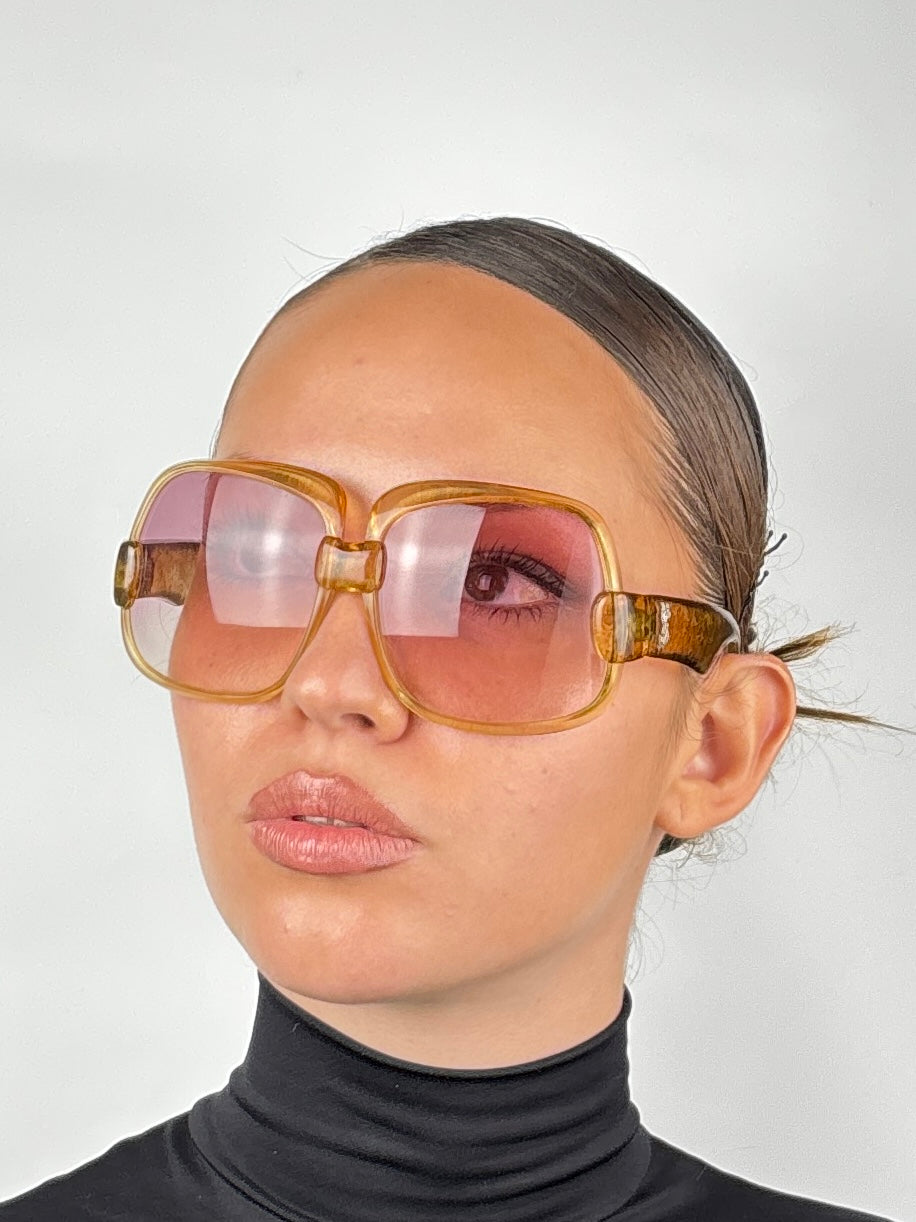 This YSL 545 features an oversized brown frame crafted in optyl with warm gradient lenses. The bold square proportions embody true 70s space-age glamour. Rare and highly collectible.