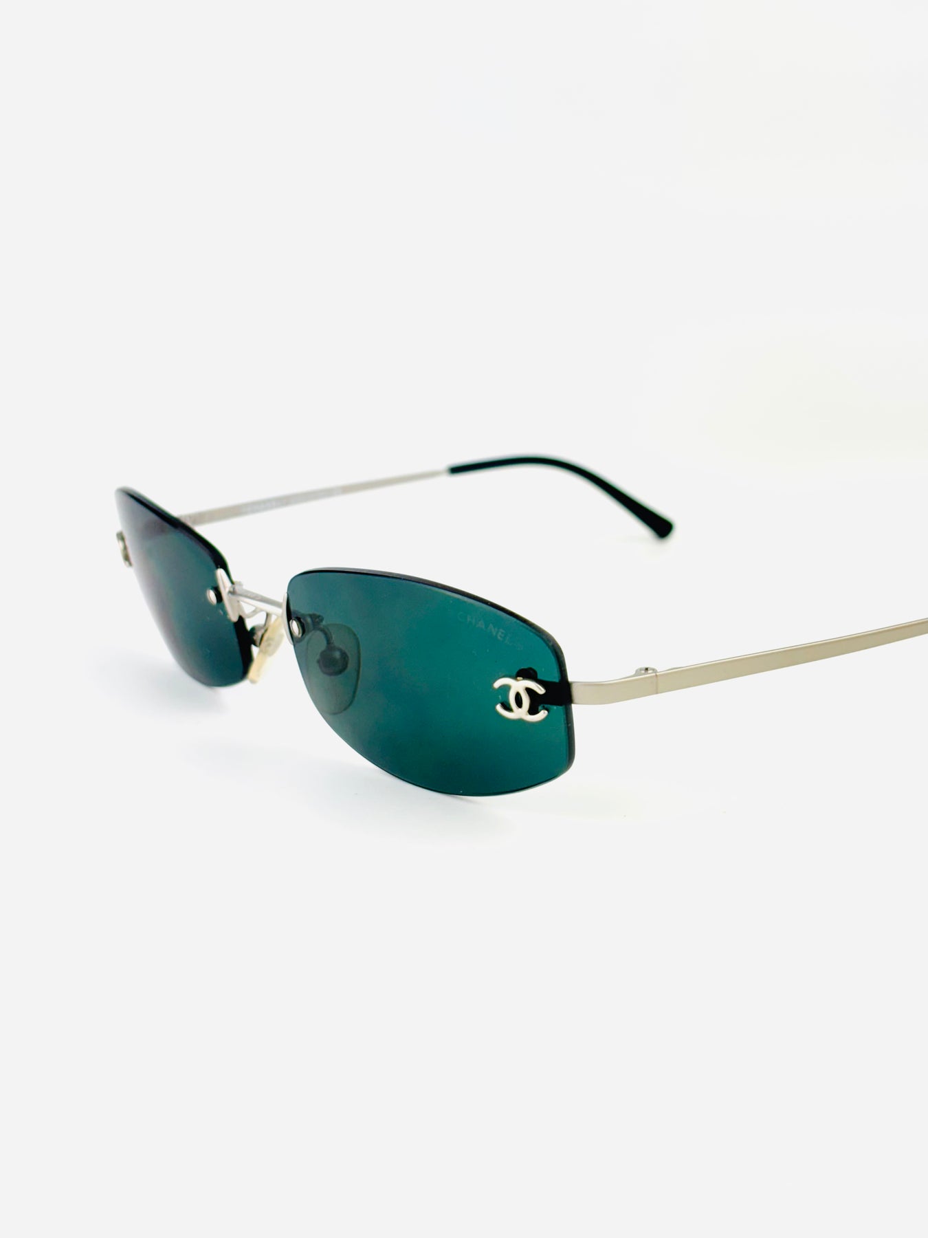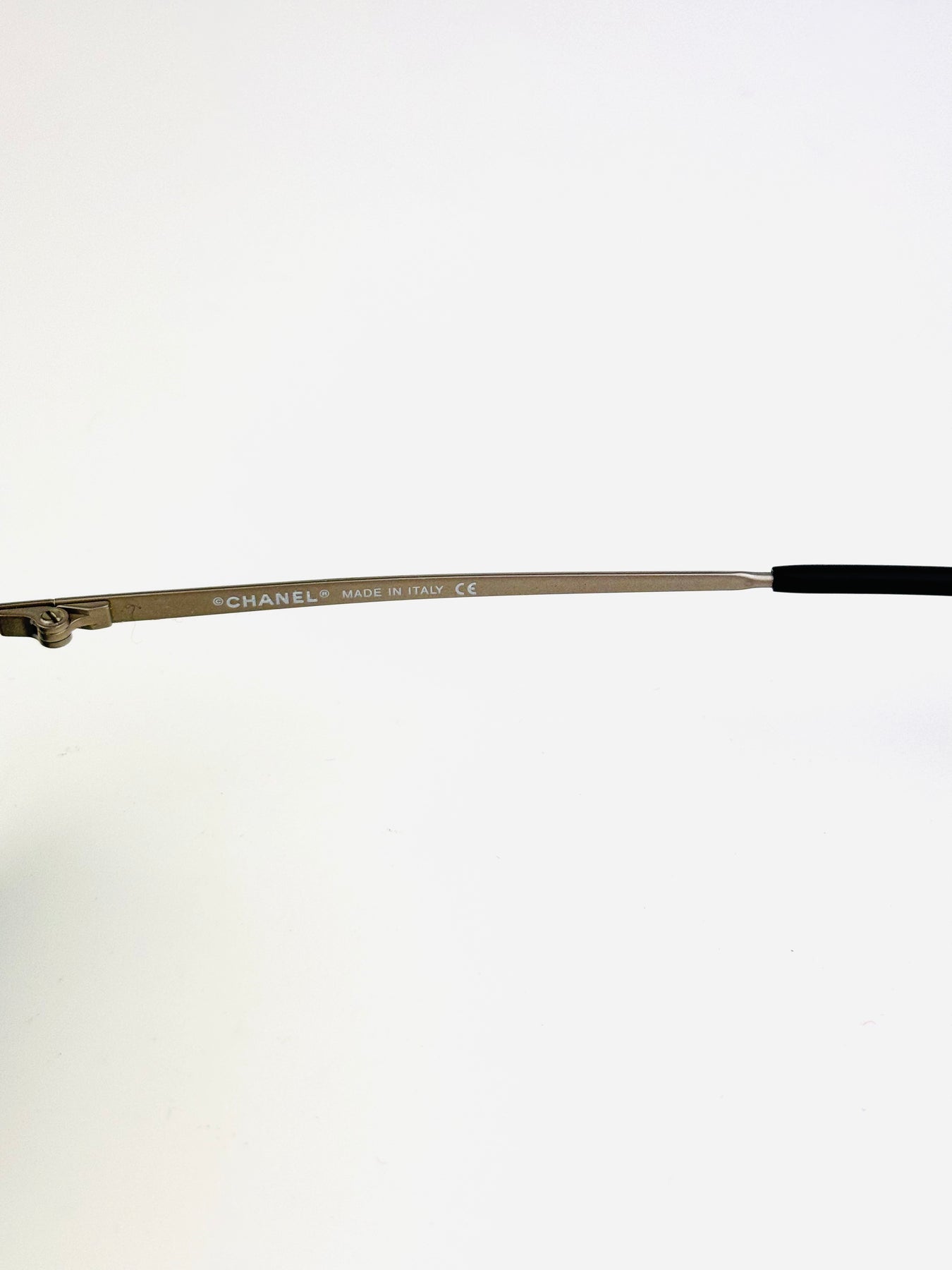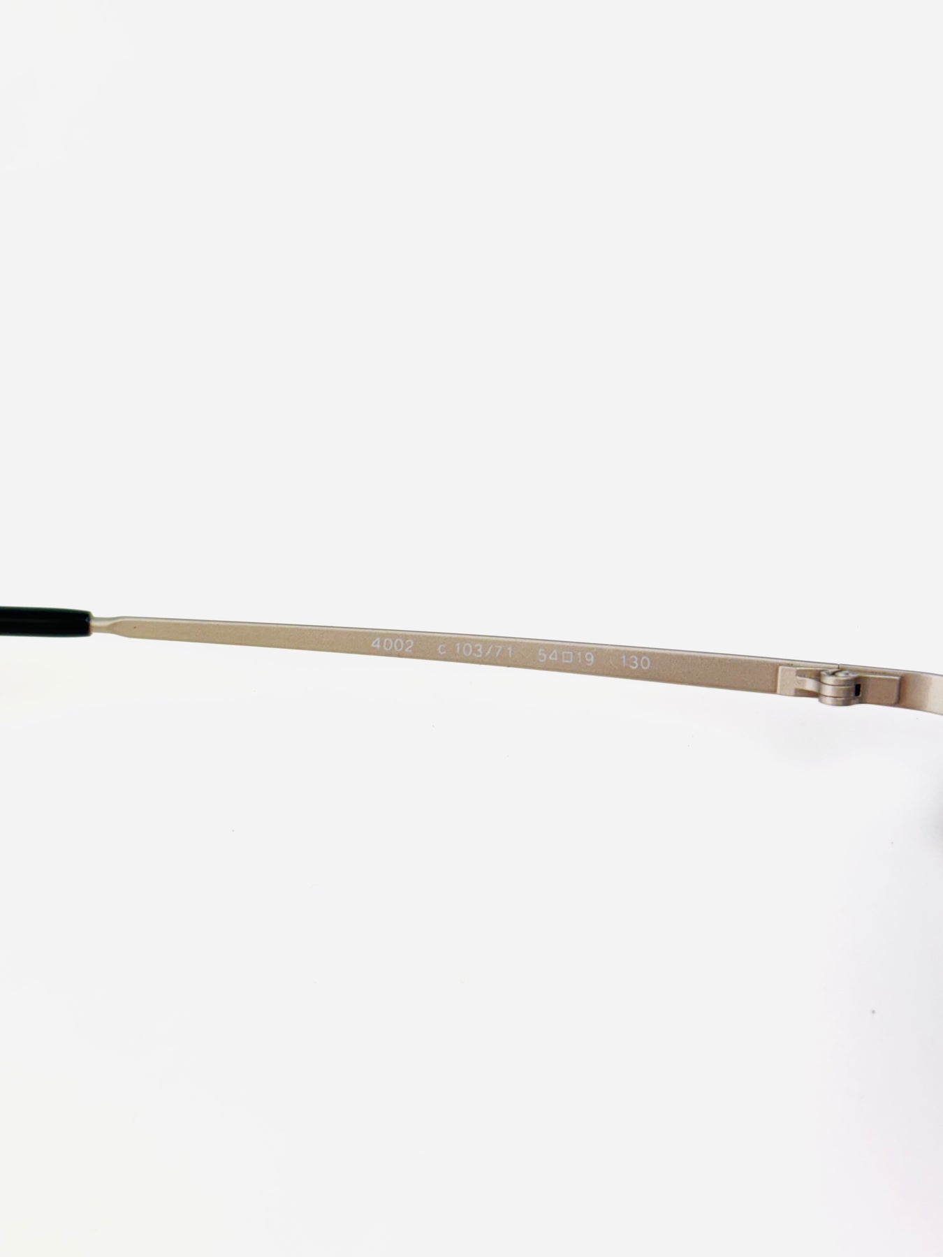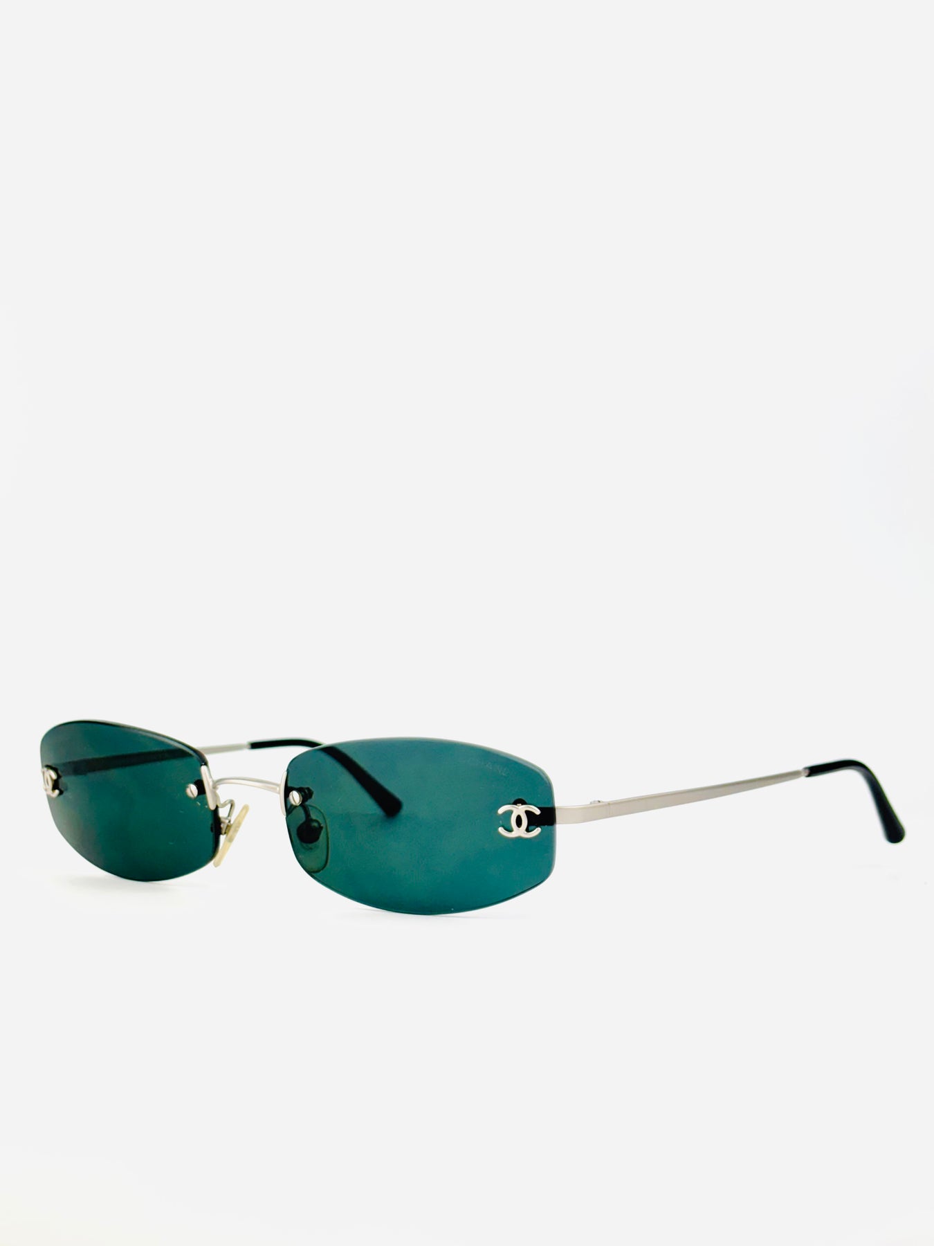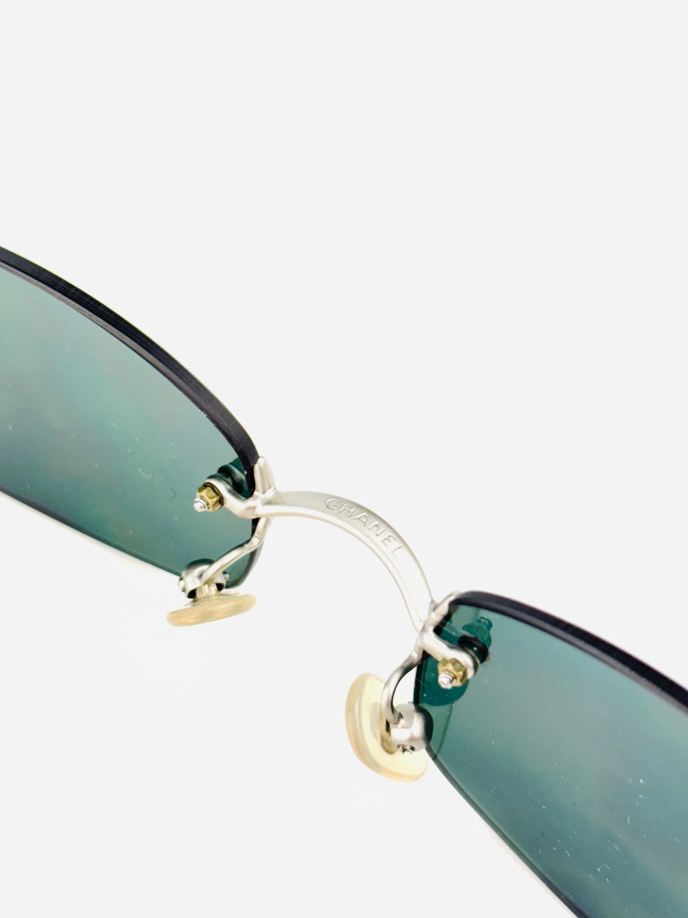 A sophisticated and rare Chanel frame from the early 2000s, the 4002 in dark blue embodies quiet luxury. Its rimless construction, deep blue gradient lenses, and refined metal detailing define the understated sensuality of Chanel’s Y2K era.