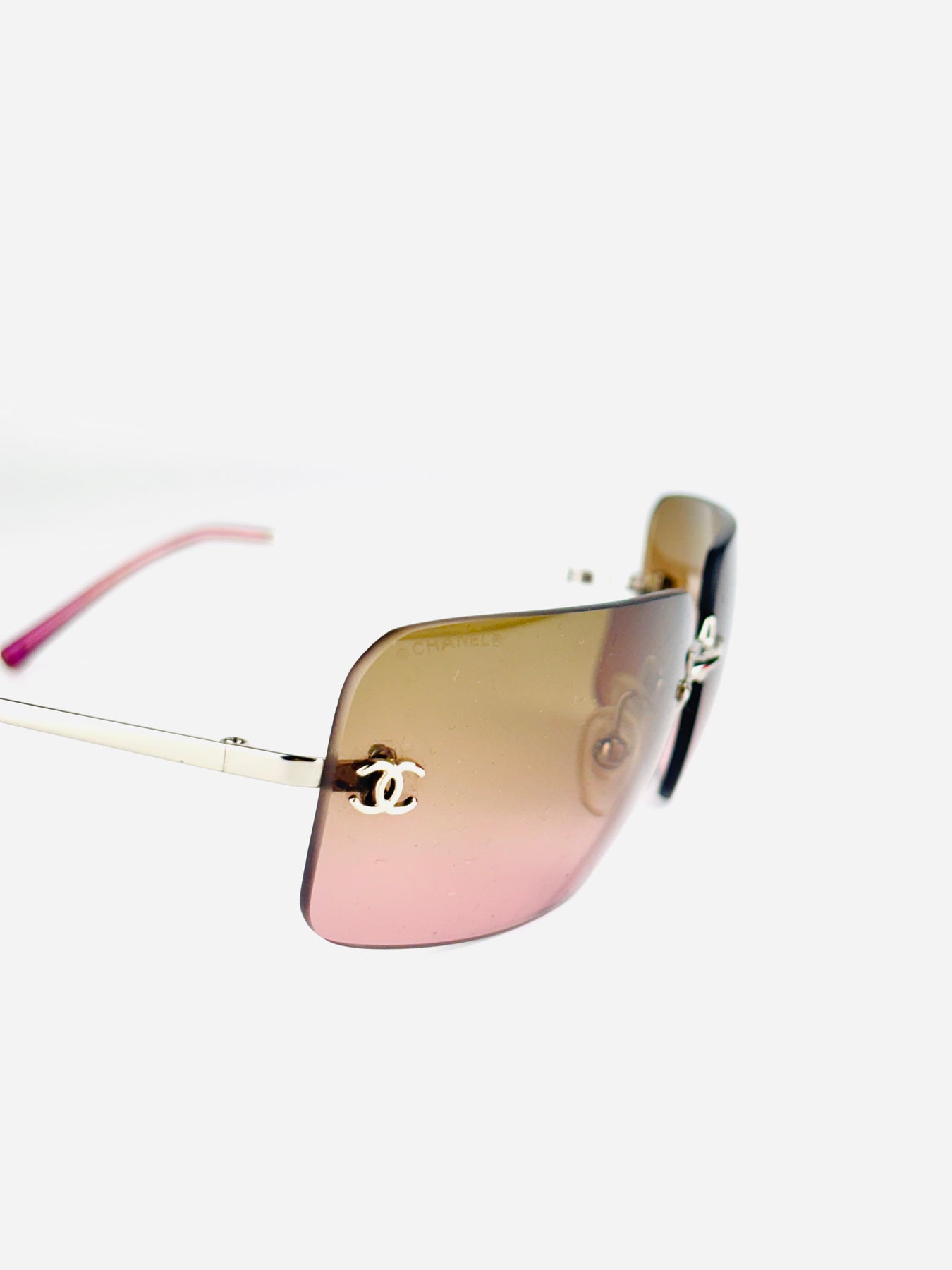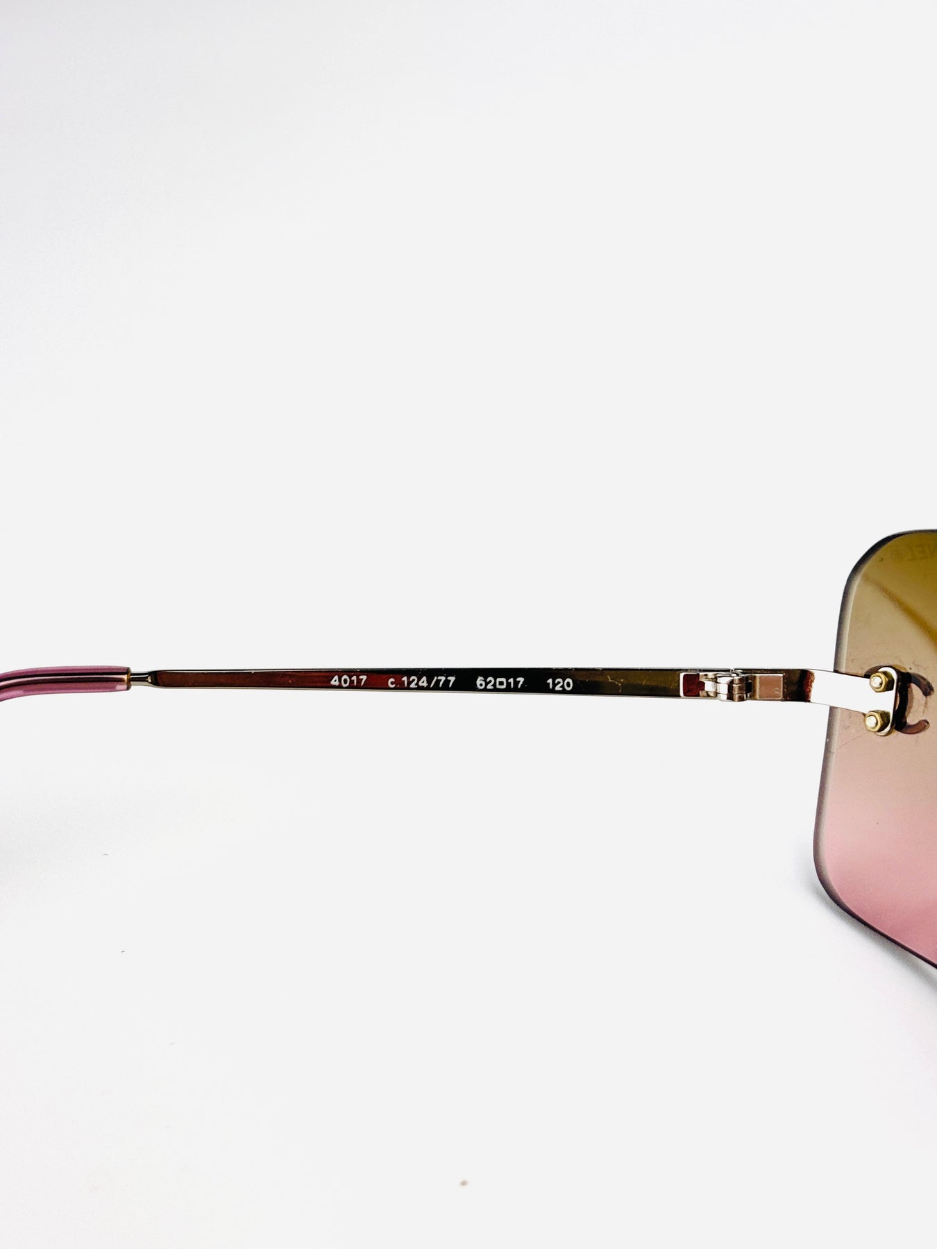 From Chanel’s most coveted rimless collection of the early 2000s, this 4017 model stands out with its elegant pink-to-bordeaux gradient lenses and minimal metal frame.