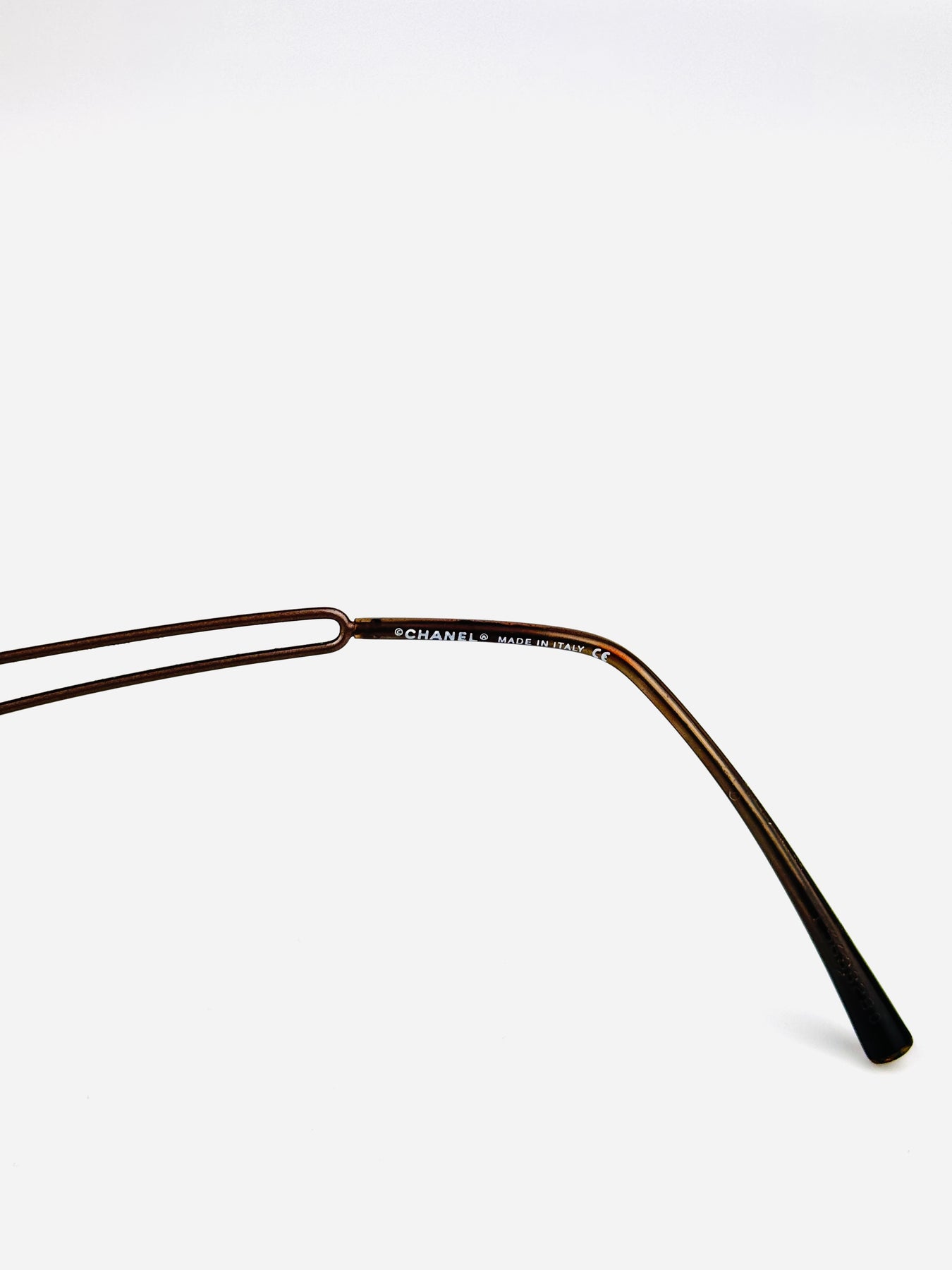 A rare and ultra-elegant Chanel rimless from the early 2000s, the 4068 embodies the sleek minimalism of the Y2K era. Its long, rectangular shield-style lens and ultra-thin wire temples give it a futuristic, floating effect on the face.