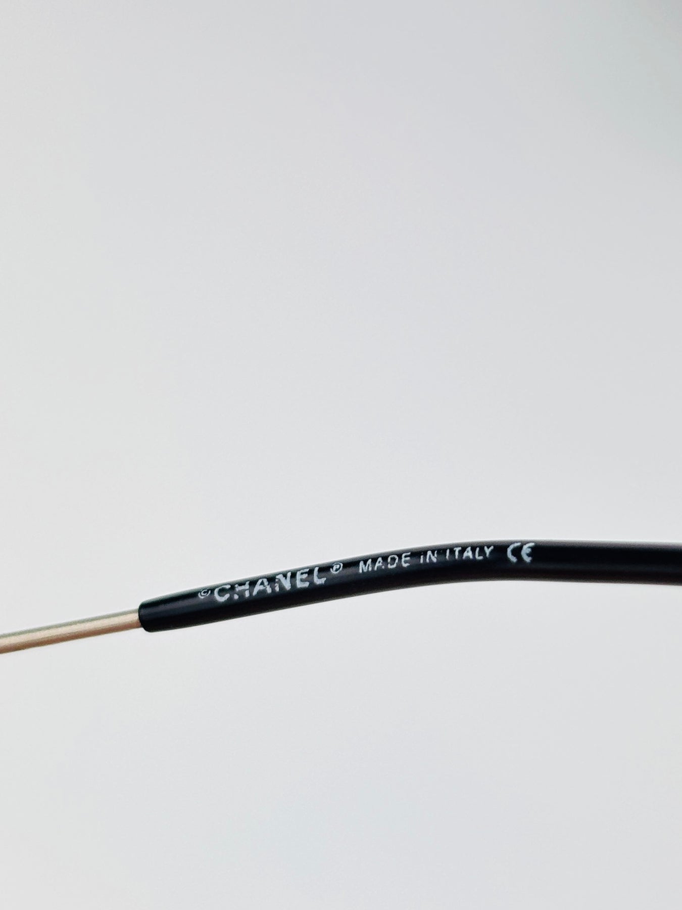 The lightweight pink rimless lens is paired with an elegant central CC logo, creating a futuristic yet refined aesthetic. Designed to be extremely light and comfortable, this model stands out as a true collector’s piece from Chanel’s most creative years.