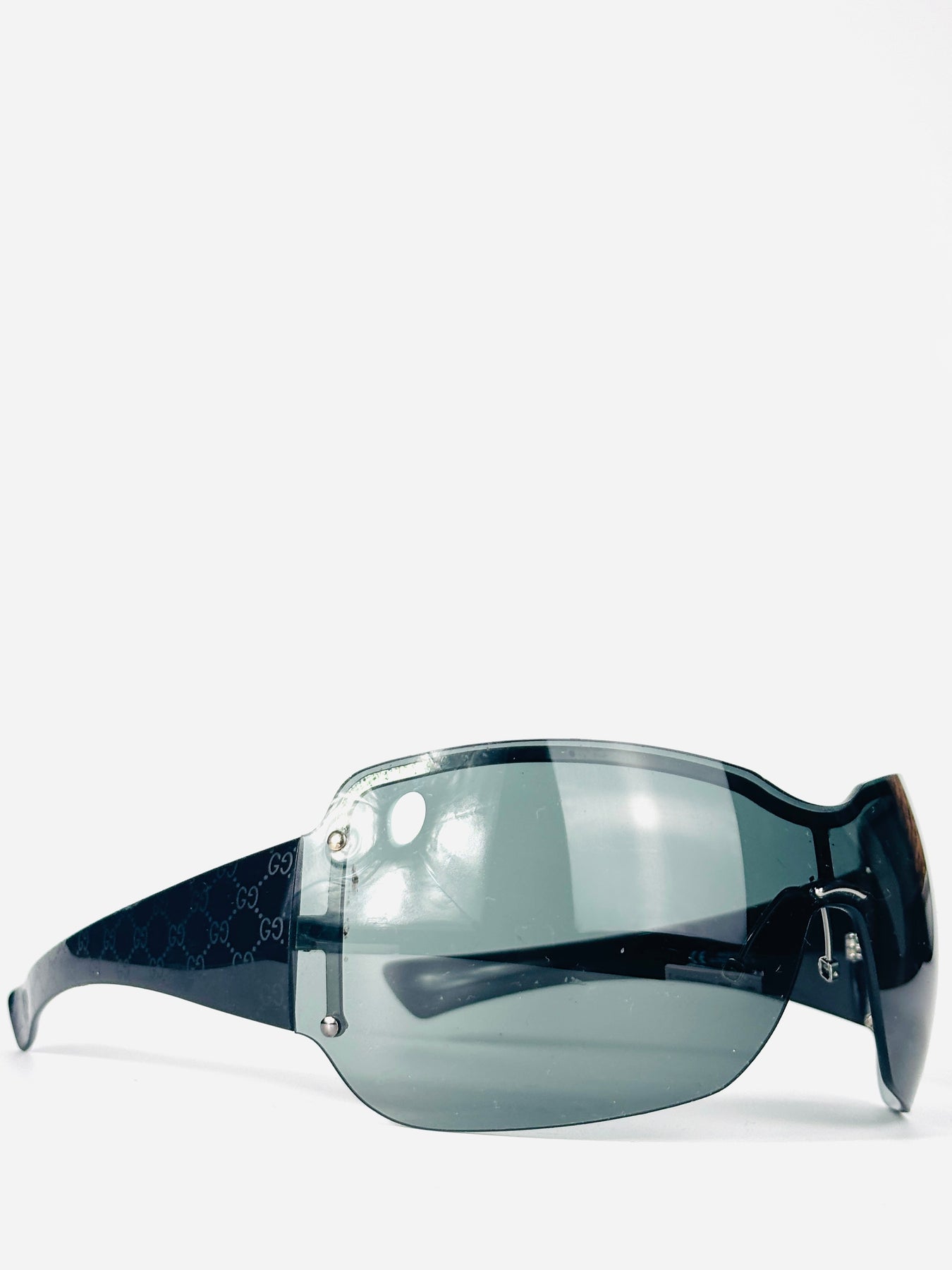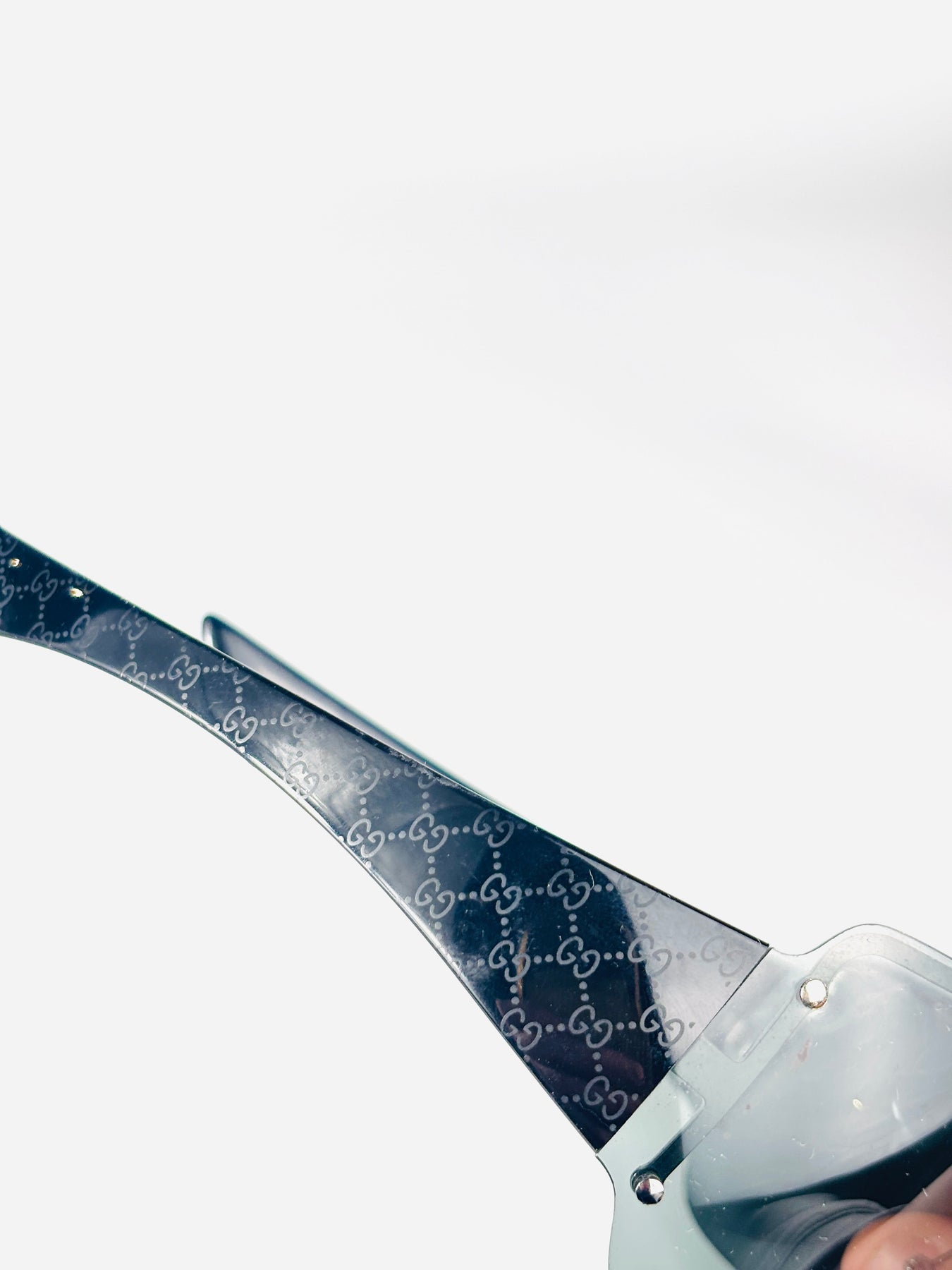 Crafted in deep black acetate, the frame features a distinctive GG emblem on the side, adding a subtle yet unmistakable signature detail. The dark lenses are well preserved, offering both comfort and everyday wearability.