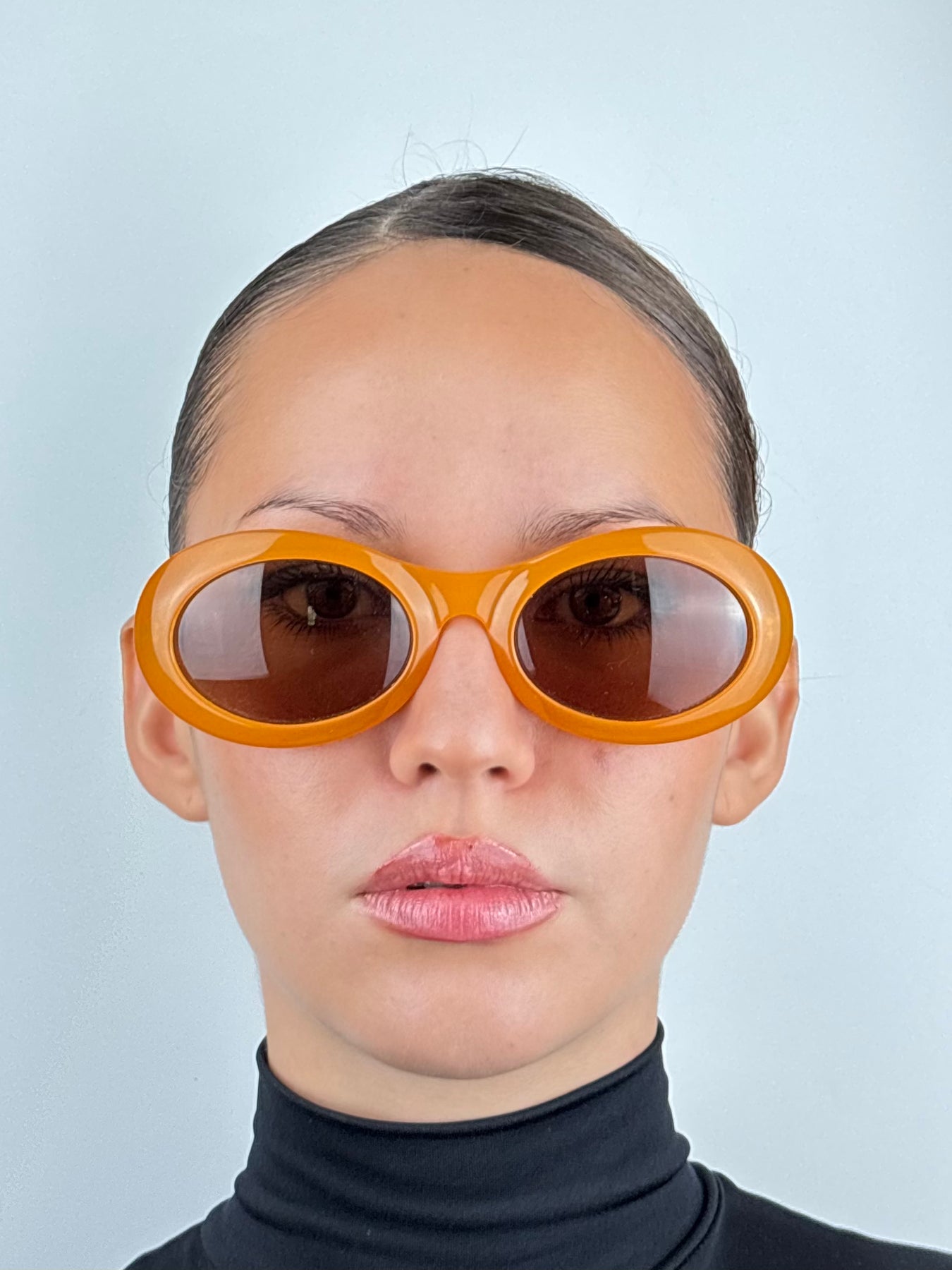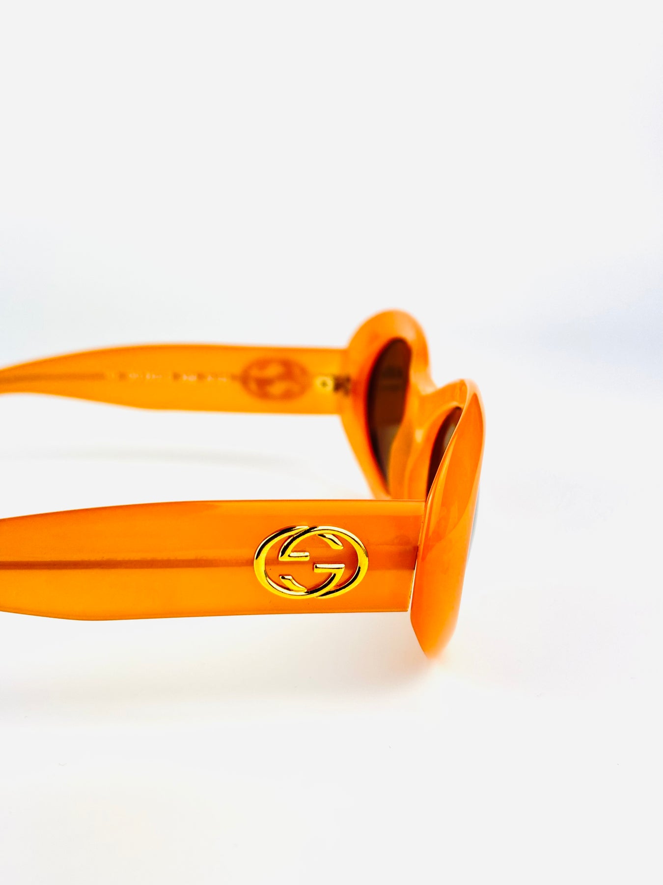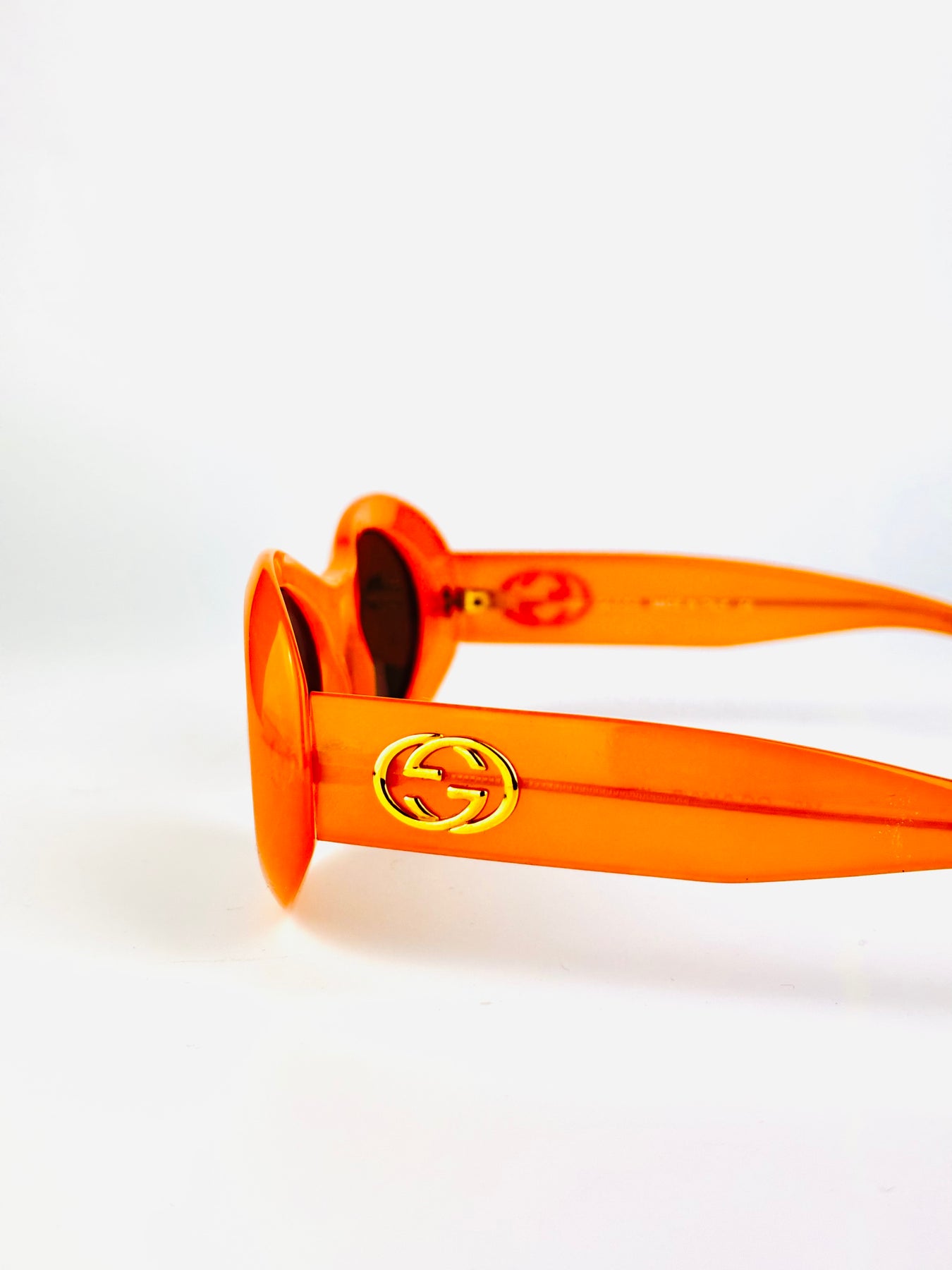 A rare and radiant Gucci frame from the 1990s, the 2400 stands out with its soft oval shape and translucent orange tone — a signature of Gucci’s warm and refined vintage aesthetic. Light, elegant, and full of personality, this model embodies the effortless charm of Italian eyewear design.