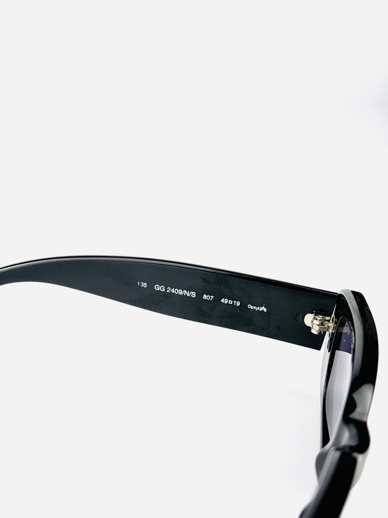 A sleek and timeless Gucci design from the Tom Ford era, the 2409 features a deep black frame and the iconic metallic “G” logo on both temples. Its clean shape and sensual curves capture Ford’s refined and confident vision of luxury.