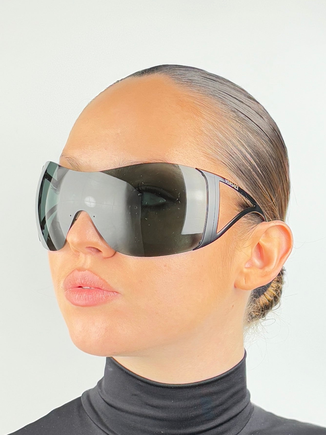 VERSACE MOD 2022 Black Oversized Shield Sunglasses – Vintage