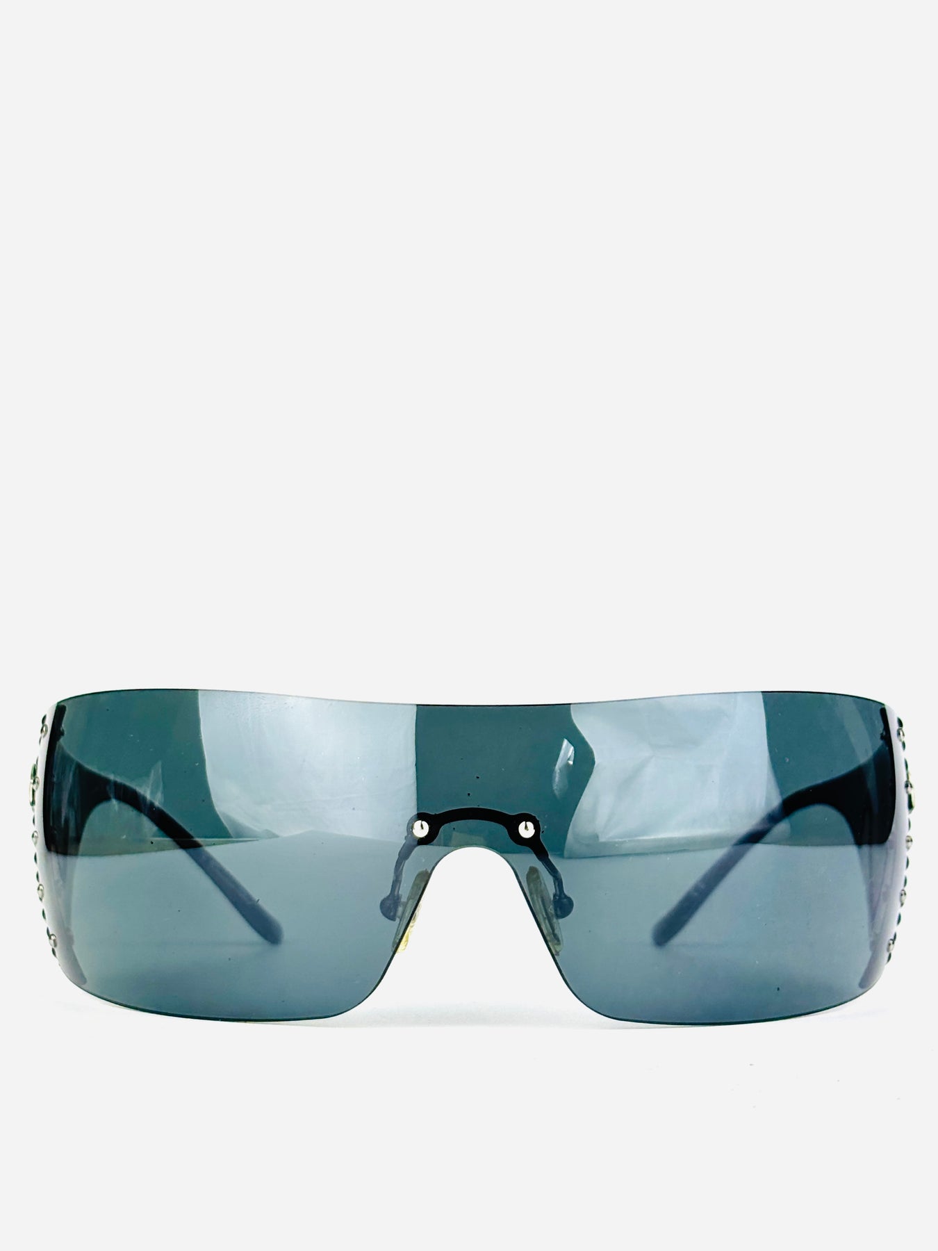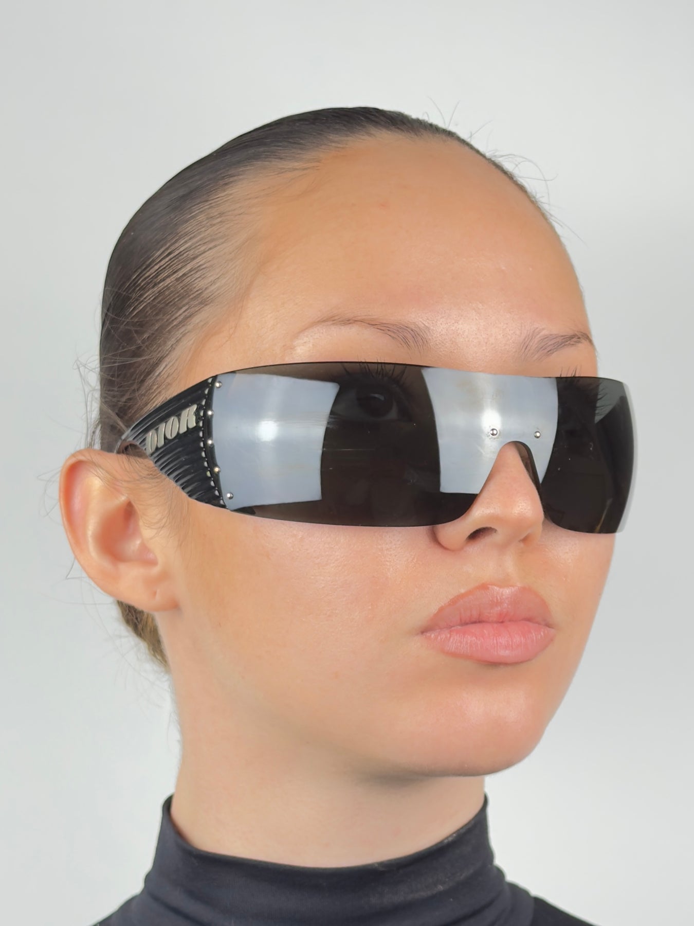 This Dior Biker model from the early 2000s is a rare and powerful design created under John Galliano’s direction. Inspired by motorsport and ski aesthetics, it features a strong wraparound shield combined with sculptural side arms.