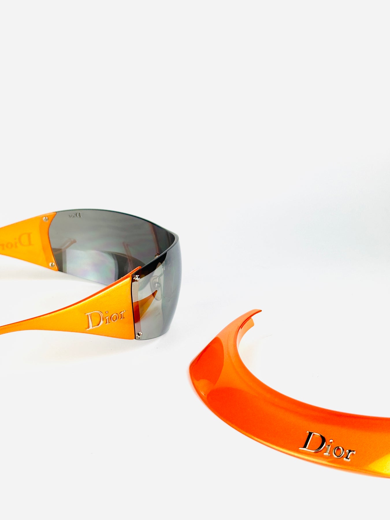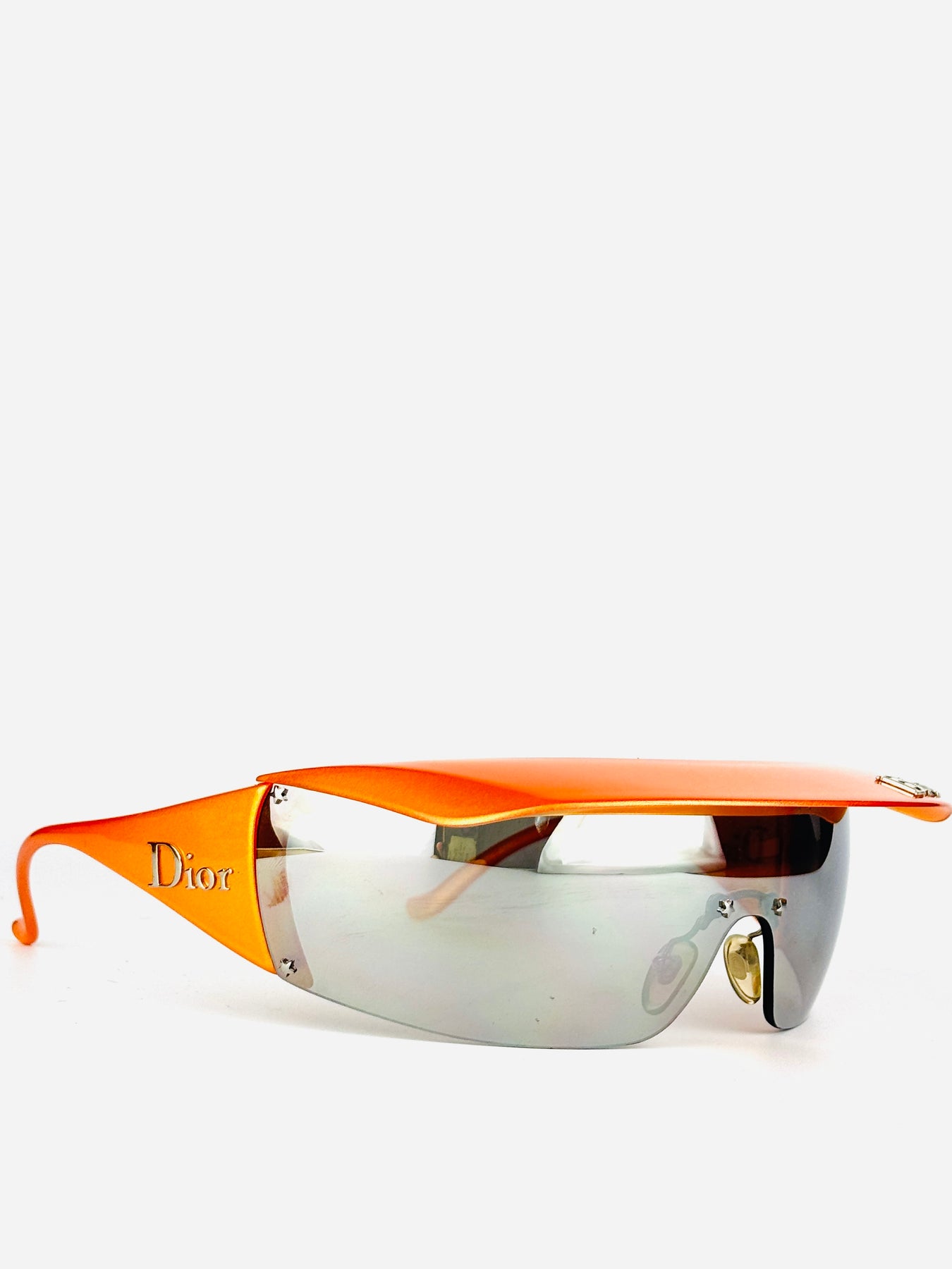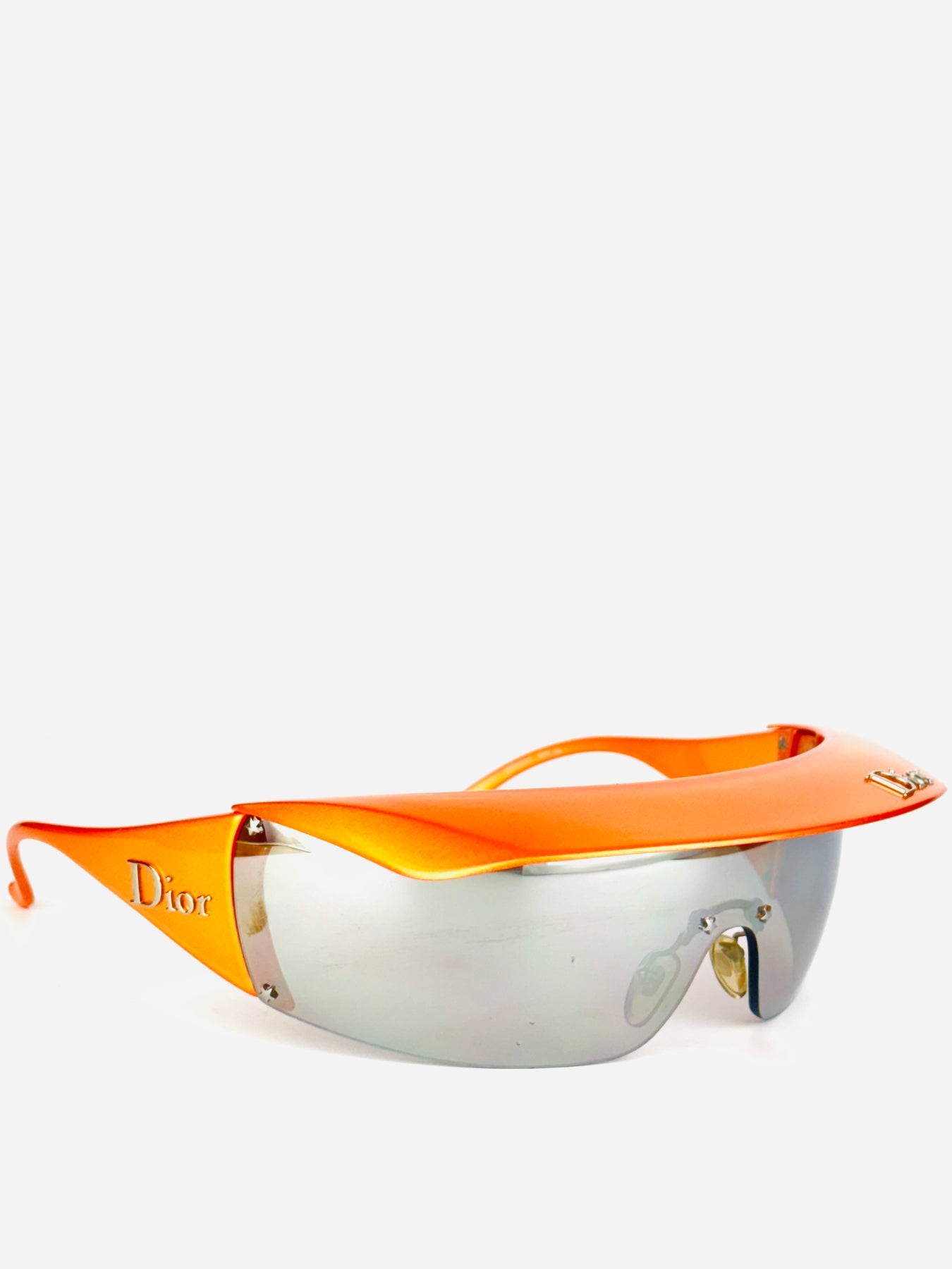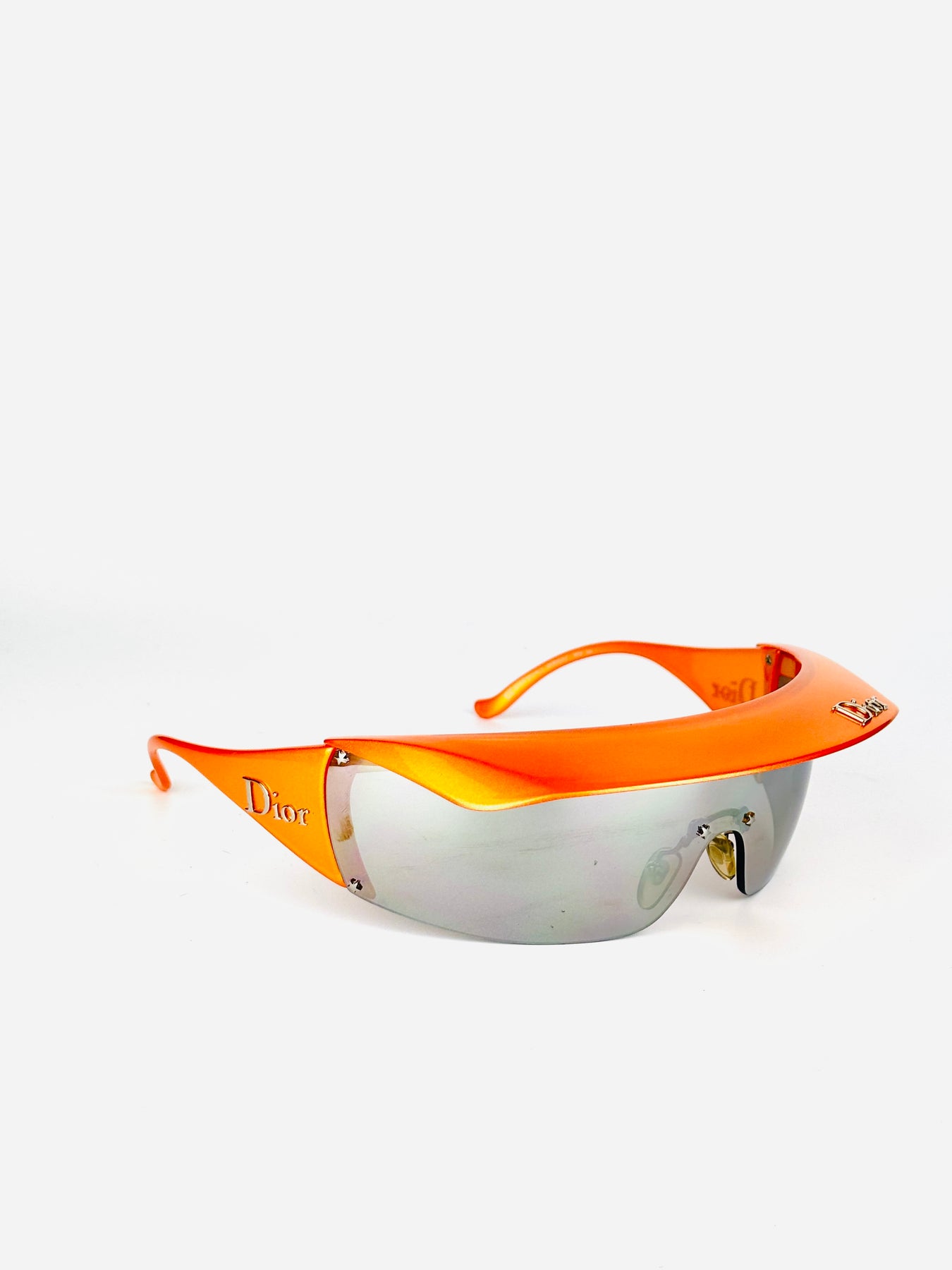 A rare Dior Golf model from the early 2000s, designed during John Galliano’s era and sharing the same futuristic DNA as the iconic Dior ski line. This version features a bold orange frame with a retractable visor, allowing versatile styling and functionality.