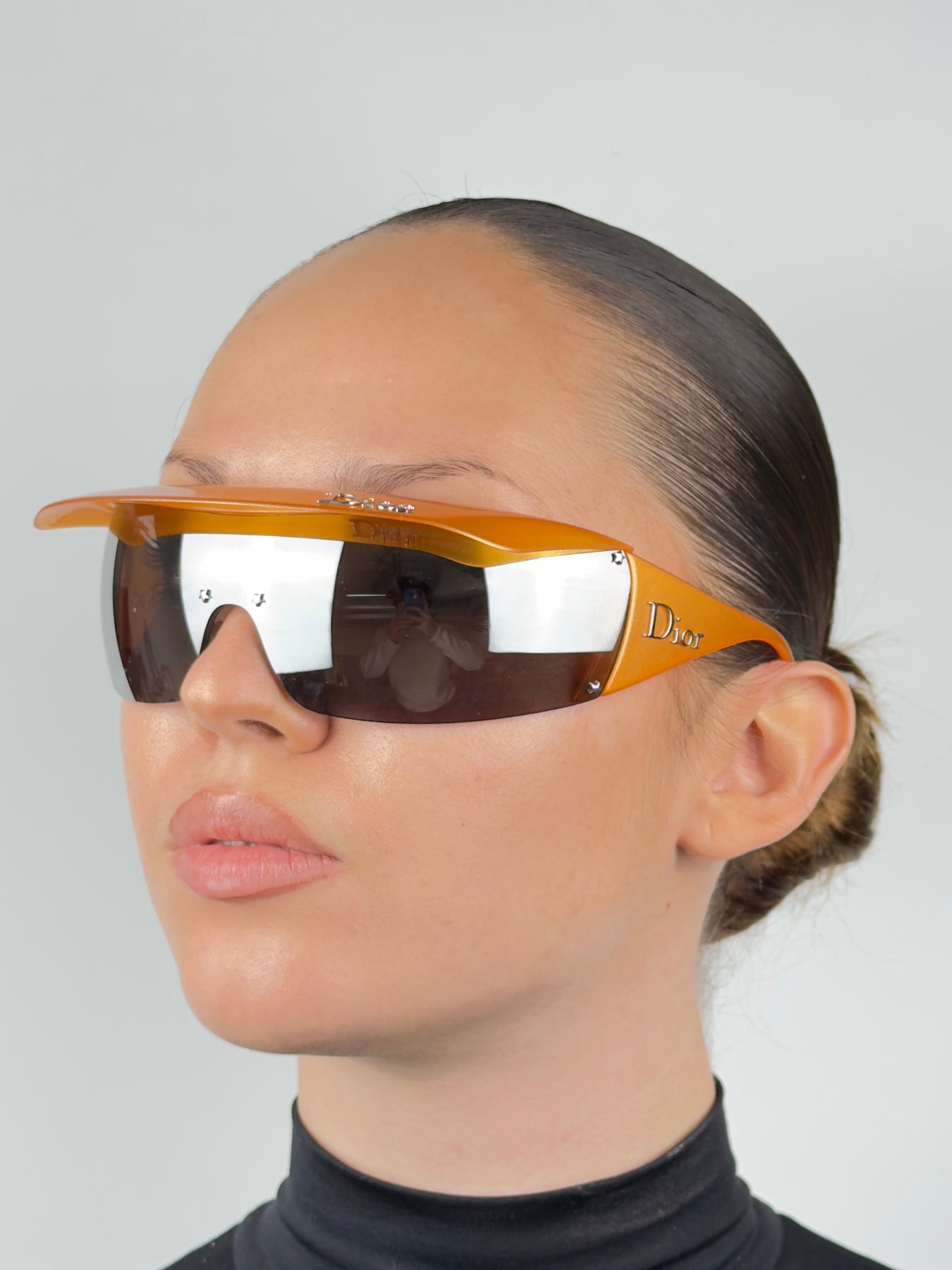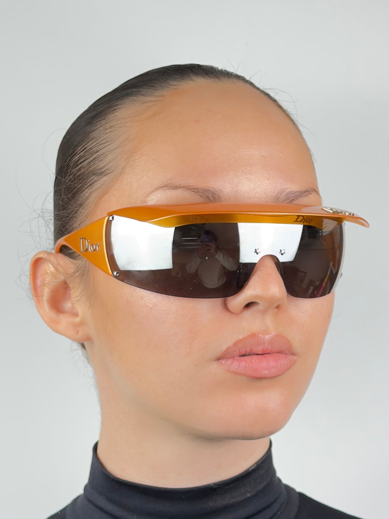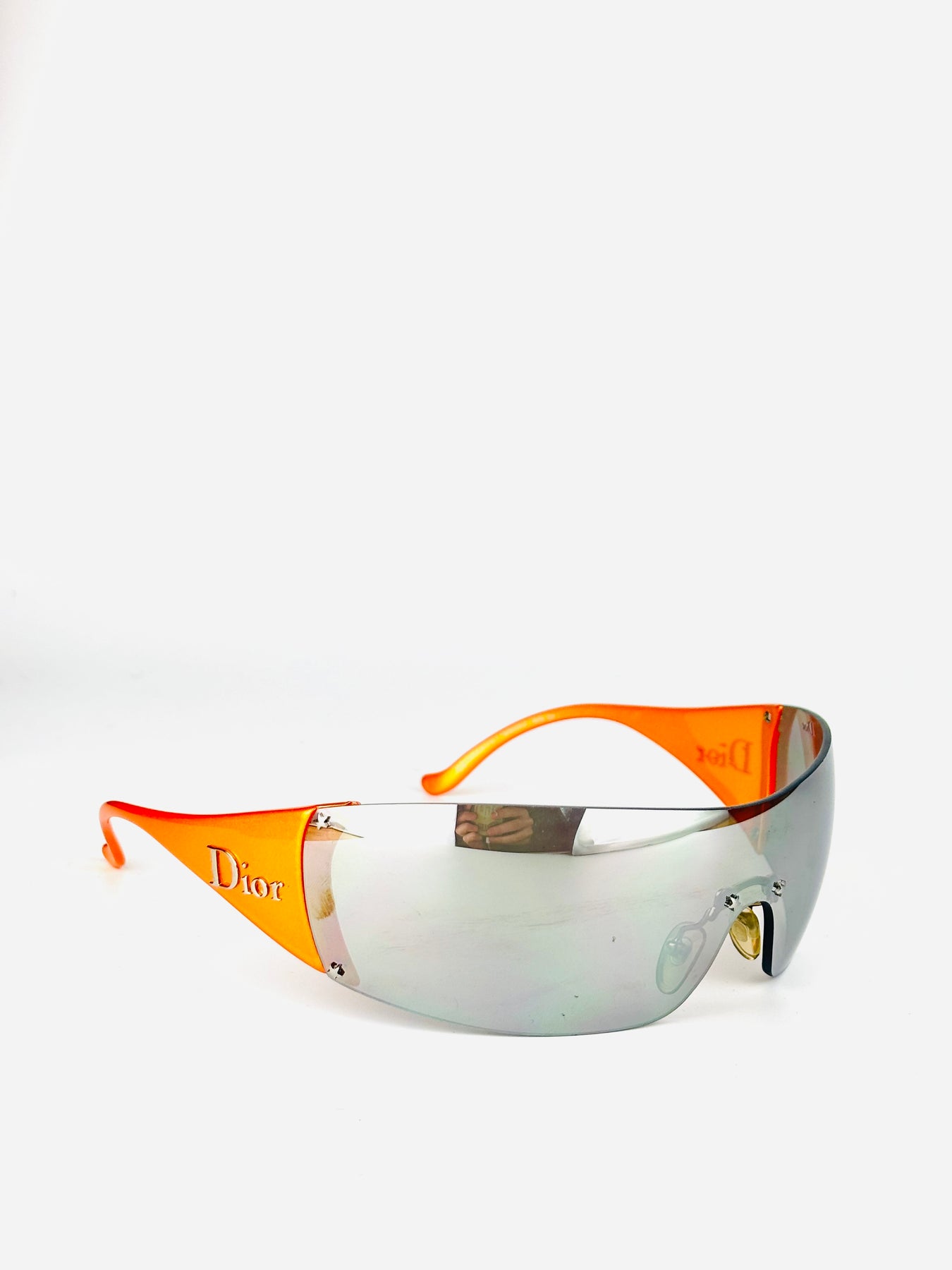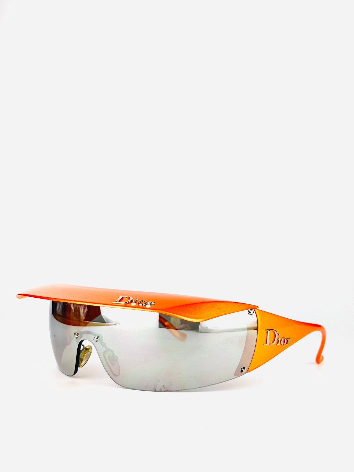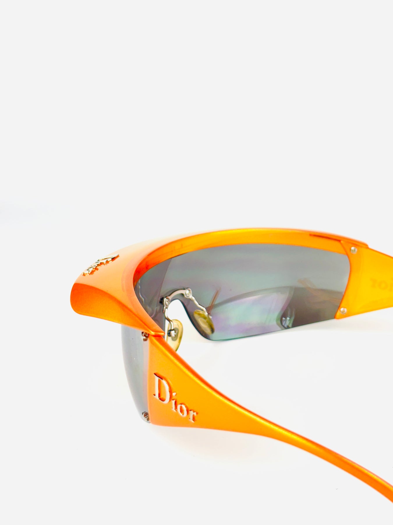 A rare Dior Golf model from the early 2000s, designed during John Galliano’s era and sharing the same futuristic DNA as the iconic Dior ski line. This version features a bold orange frame with a retractable visor, allowing versatile styling and functionality.