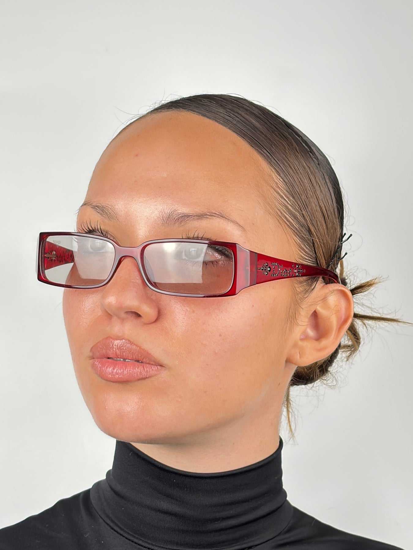 DIOR Light Red Bayonetta Strass 2000s Sunglasses