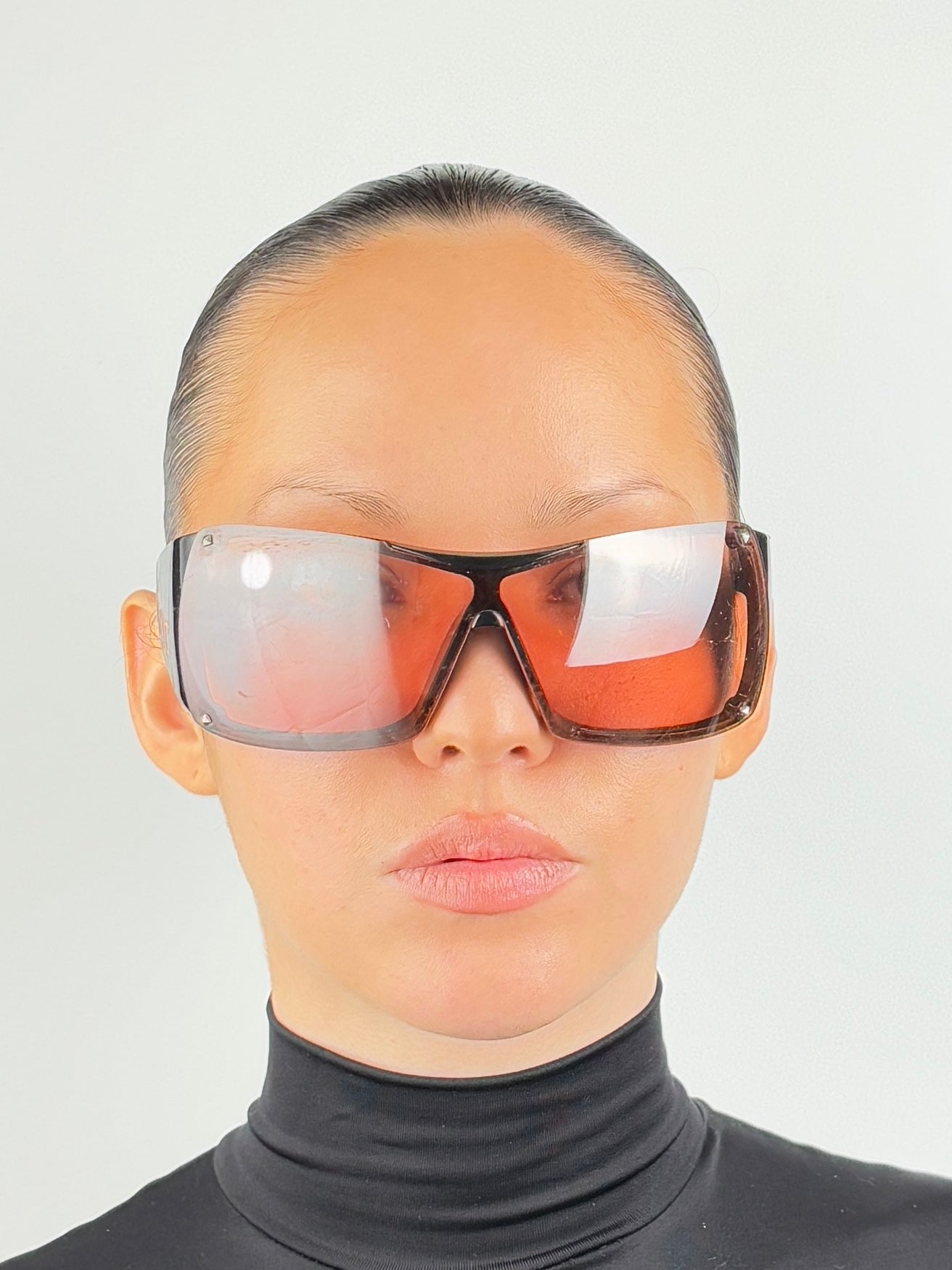 An unmistakable Dior Overshine model from the early 2000s, designed under John Galliano and known for its bold proportions and oversized silhouette. A true statement piece from Dior’s most experimental eyewear era.