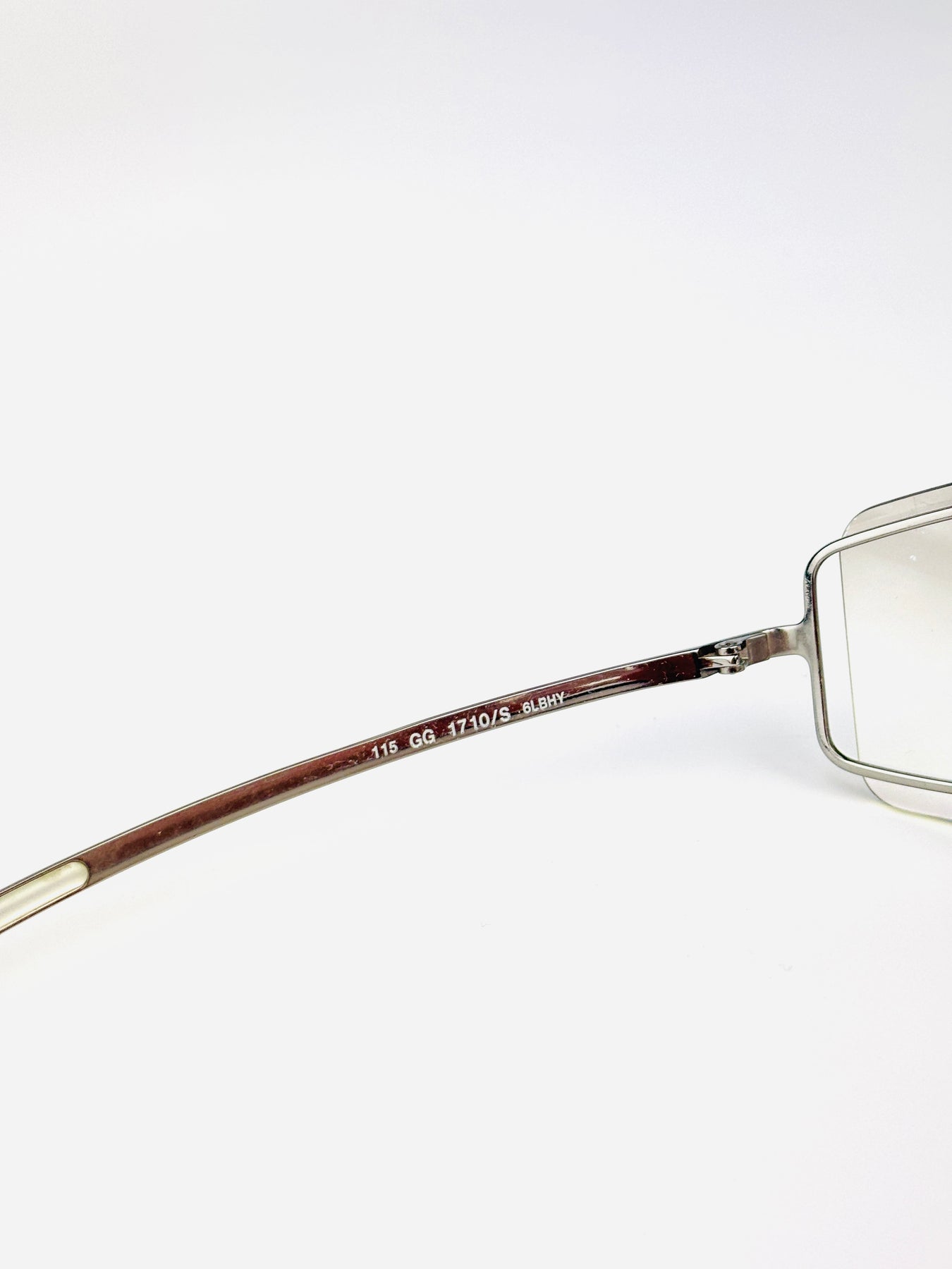 This Gucci 1710 model is a rare transparent-frame design from the Tom Ford era, embodying the experimental elegance that defined Gucci in the early 2000s. The structure is sharp and modern, with a distinctive architectural silhouette.