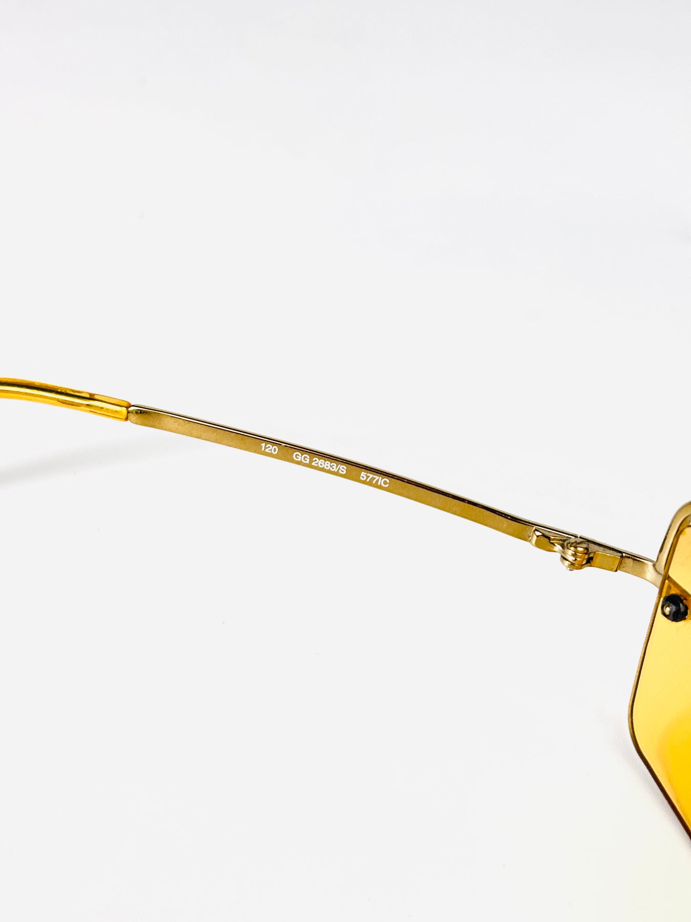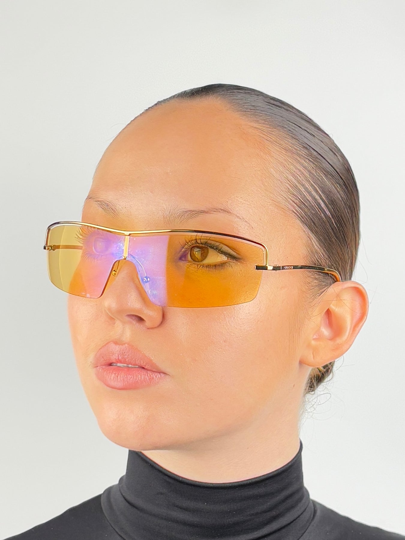 The Gucci 2683 is a rare late-1990s shield-style model that perfectly captures the bold, experimental spirit of Gucci eyewear before the 2000s boom. With its vibrant yellow lenses and sleek, minimal construction, this piece delivers a strong Y2K-forward aesthetic.
