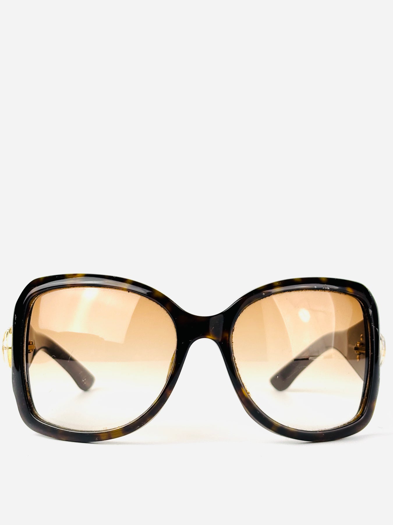 This GG2938/S showcases a rich brown tortoise acetate frame paired with warm gradient lenses. The iconic gold GG logo on the temples adds a refined yet powerful statement. Very good vintage condition.